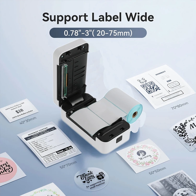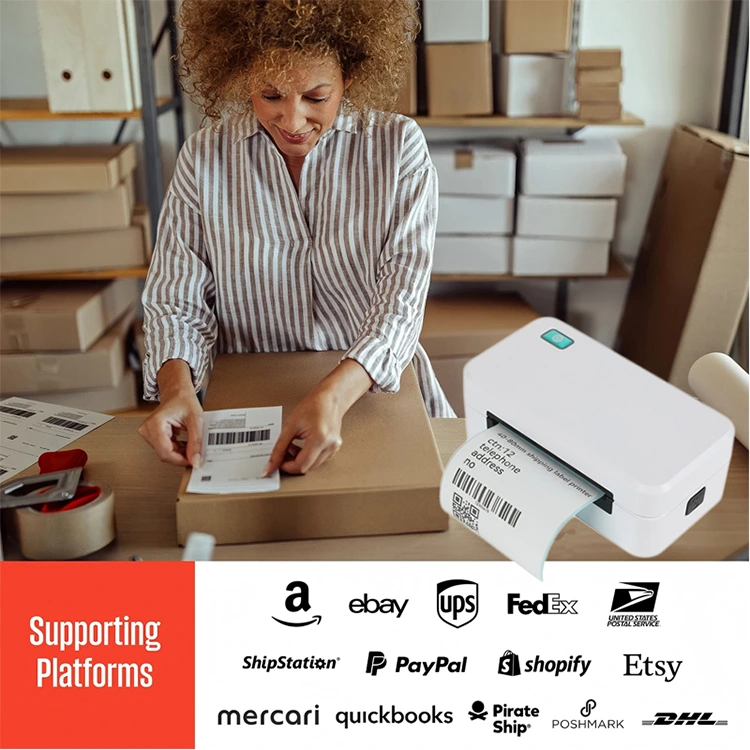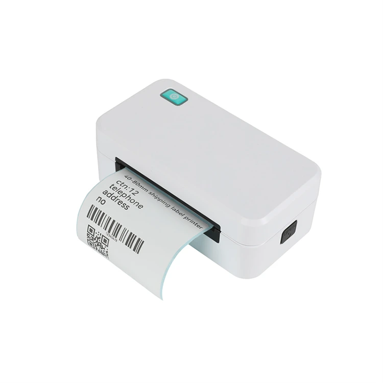La impresora tiene una bandeja de papel incorporada para un almacenamiento conveniente del papel y la cubierta superior se puede abrir presionando un botón lateral para facilitar la operación. Imprime de forma rápida y clara sin manchas de tinta, lo que la hace ideal para imprimir etiquetas de envío, códigos de barras y otras etiquetas en lugares como almacenes y tiendas de té de burbujas.